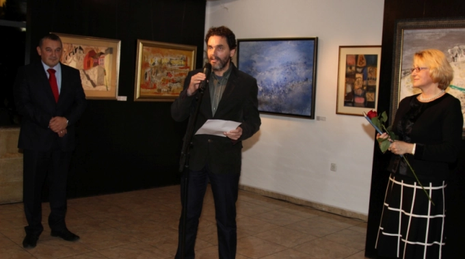 Юбилейна изложба по повод 20 г.- галерия "Видима" в Министерството на културата, ноември 2017 г., вдясно на снимката е Ирина Колбасова, на която това откриване бе последното откриване на изложба, снимката е на Деана Денева