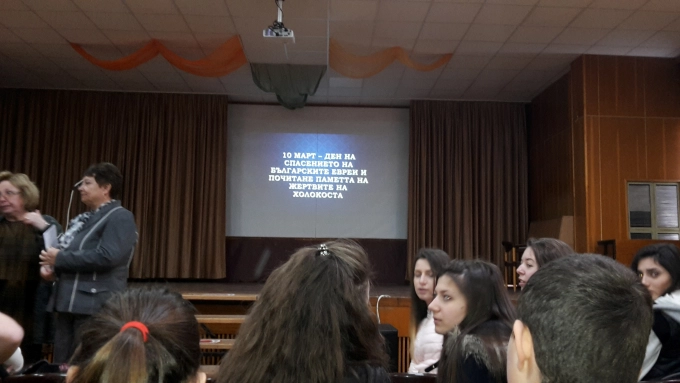 В навечерието на 10 март в Актовата зала на СУ „Васил Левски“, гр.Севлиево, бе отбелязан Денят на спасението на българските евреи и почитане паметта на жертвите на Холокоста. Организаторите на събитието – учениците от IX А и IX Б кла, подготвиха доклад и презентация за мероприятието, а присъстващите в залата съпреживяха трагедията на евреите чрез вълнуващите кадри на учебен филм. Събитието завърши с иновативни игри, провокиращи размисъл и гражданска позиция у възпитаниците на училището.