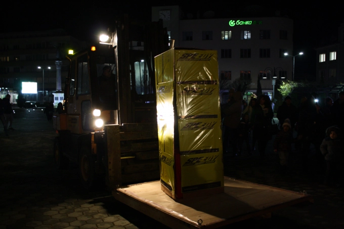 Той пристигна тази вечер, но заради бързо стопилия се сняг, бе доставен с куриер. Объркването на събралите се да го посрещнат деца бе доста голямо, когато три пъти извикаха "Дядо Коледа, ела при нас!", а той отникъде не се появяваше. Тогава през площада на Севлиево премина багер с гребло, който караше доста обемиста пратка. Заместник-кметът Красимира Йорданова бе извикана да провери дали не става дума за извънредна пратка за Общината, но когато г-жа Йорданова надникна в кашона, се оказа, че пратката всъщност е...Дядо Коледа.