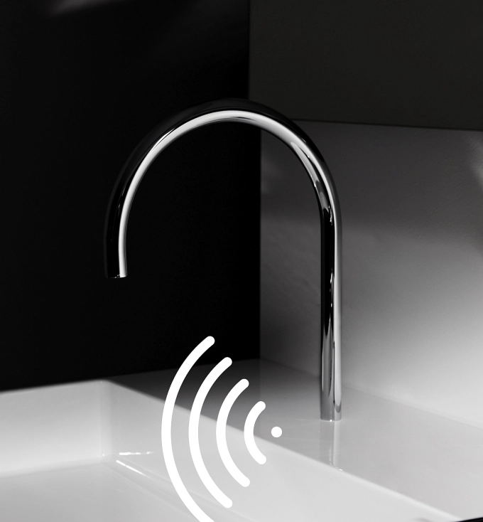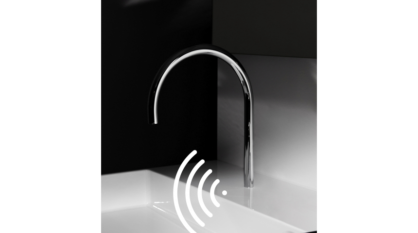 Емблематичната комбинация от мивка и интегриран смесител е впечатлавяща и иновативна. Минималистичният и чувствен дизайн предава усещане за лекота и непреходна елегантност, отразявайки красотата на простотата. Фините прави линии и изключително тънките ръбове придават на мивката безтегловност, а интегрираният изискан смесител завършва картината. Смесителят е интегриран в мивката, видими са само изящният чучур и ръкохватката, което прави тази комбинация наистина уникална.