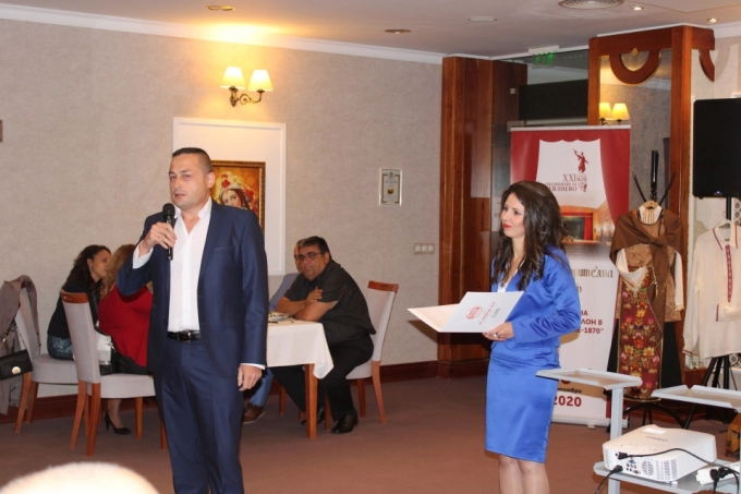 На благотворителна вечер през октомври 2020 г. сдружение "Севлиево 21 век" събра 32 500 лв. за основен ремонт на читалищния салон, на снимката Емилиян Маринов и секретарят на Читалището Нели Тотева представят как ще изглежда Читалището след ремонта, снимка: "Севлиево 21 век"