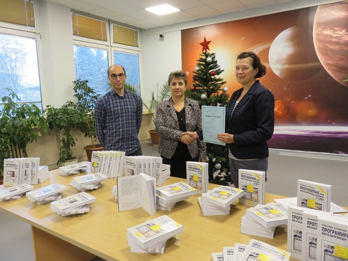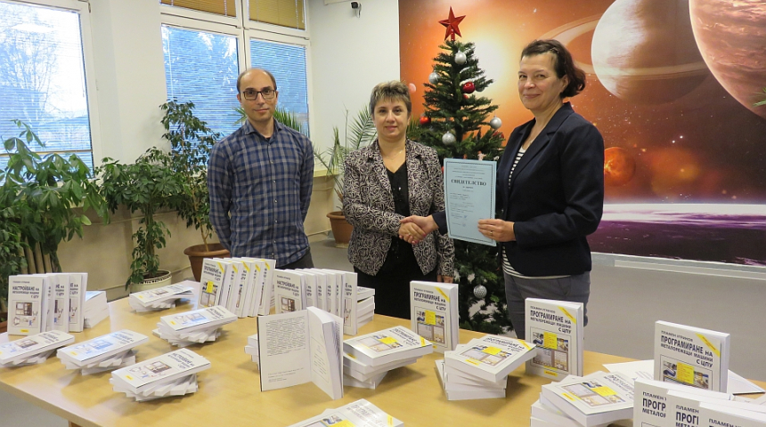 Инж. Светлана Георгиева и д-р инж. Хасан Хасанов от компанията - дарител връчиха учебниците.