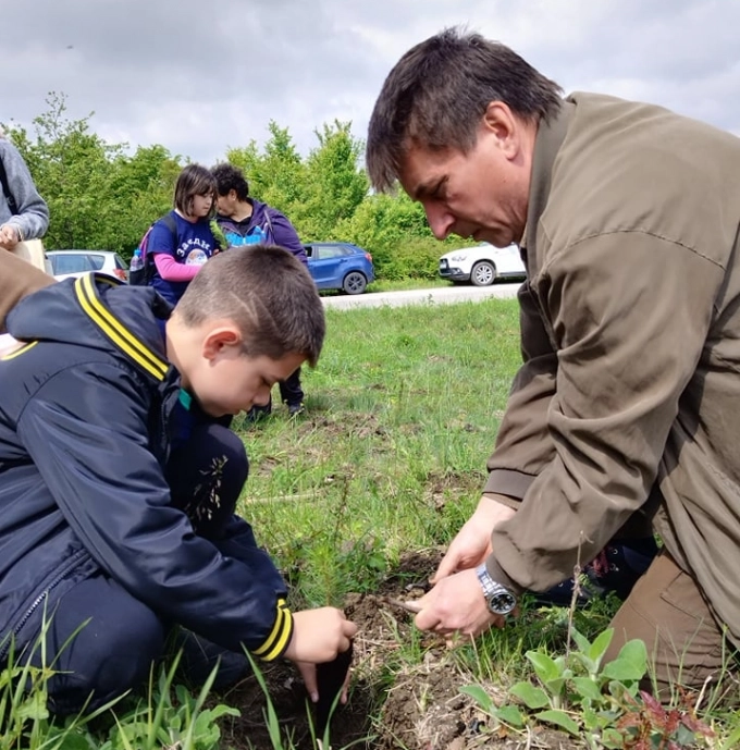 Лесовъдите обясниха на децата как е най-правилно да се залеси фиданка, снимка: СЦДП