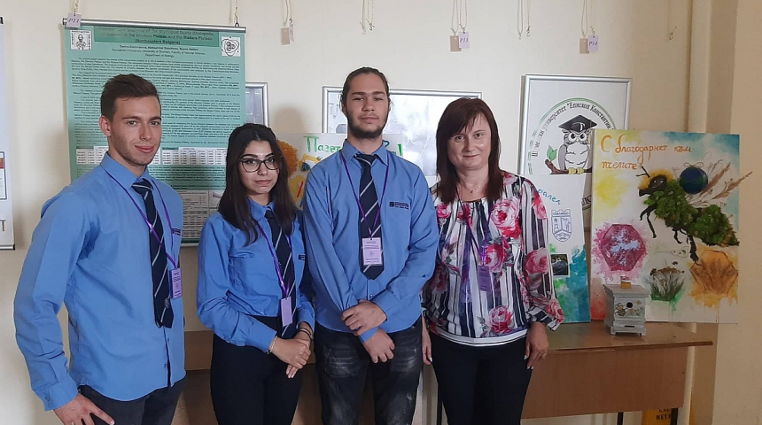 Денислава Нанкова, Радослав Спасов и Мартин Казанджиев, ученици от 11 „а“ клас на ПГМЕТ "Ген. Иван Бъчваров", заедно с научния им ръководител Ивелина Колева, старши учител по география и икономика, участваха в постерната сесия на Двайстото издание на Националната конференция с международно участие „Природни науки’ 2022”.