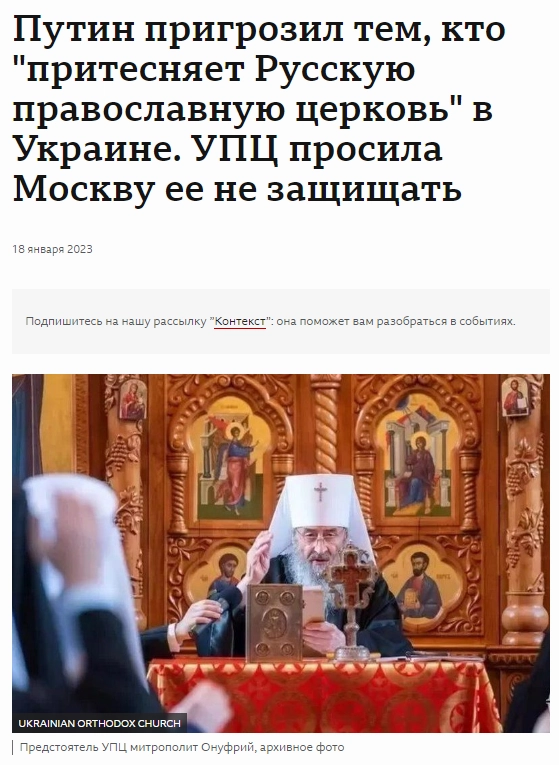 Случаят с УПЦ е по-различен. След инвазията на Русия в Украйна УПЦ обяви, че се отделя от Московската патриаршия, но процесът не е проведен формално съгласно каноничното право. Някои старши църковни служители от УПЦ са заминали за Русия след началото на войната, а други са разследвани за измяна в Украйна. Все пак повечето представители на Украинската православна църква (УПЦ) заклеймяват войната и не възприемат повече патриарх Кирил за свой духовен лидер.