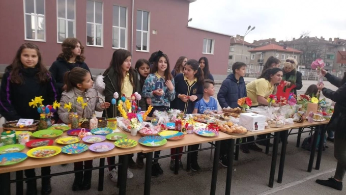 С част от сумата, 1000 лв., ще бъде подпомогната 6-годишната Криси, която страда от церебрална парализа, а останалите средства ще отидат за реновиране фоайетата в двете училищни сгради - основната и бившето начално училище, където ще бъдат обособени кътове за отдих. Тази година базарът премина под мотото "Да творим добро заедно". И въпреки мразовитият вчерашен ден, ученици и учители подредиха "стоката" в двора на училището, а докато посрещаха приятели и съмишленици, пяха, танцуваха и дори хоро извиха. Великденският базар на училището е традиционен и се провежда два пъти в годината - преди Великден и Коледа. За първи път в него освен изработените от децата, родителите и учителите празнични сувенири, базарът имаше кулинарна част, възможна благодарение усилията на майки и баби.