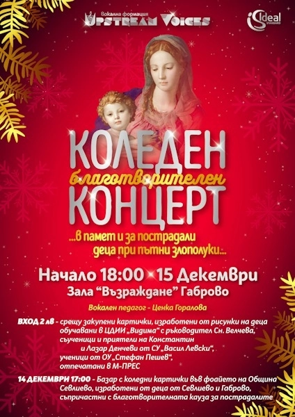 Концерт в памет на Лазар Денчев, подкрепа на братчето му Константин и майката Светла Денчеви, организират на 15 декември в габровската зала "Възраждане" вокална формация "Up stream voices". Идеята дошла с обстоятелствата. Докато децата репетирали коледния си концерт, при жестока катастрофа загина Лазар, а майка му Светла е с тежки травми, които налагат продължително лечение. "Заедно с децата и родителите решихме да иницираме благотворителна кампания. И я посвещаваме на загиналите при пътни инциденти деца. А в конкретния случай, на 13-годишния Лазар", сподели ръководителят на формацията Ценка Горалова.