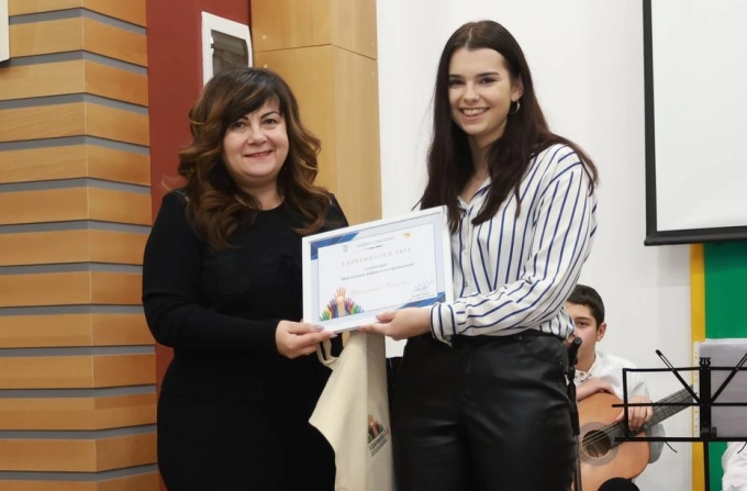 Марилена Христова с кмета на Севлиево, снимка: Община Севлиево В категория „Екология и здраве“ отличена е Марилена Христова от Средно училище „Васил Левски“ за приноса й в привличането интереса на младите хора към опазване на екологията и здравето. Това е един от интересите на любознателното момиче, за което казват, че е дейна и устремена, уважавана от съучениците си. Интересите й са многостранни, но надделява тези в областта на екологията, опазването на природата и грижата за човешкото здраве.