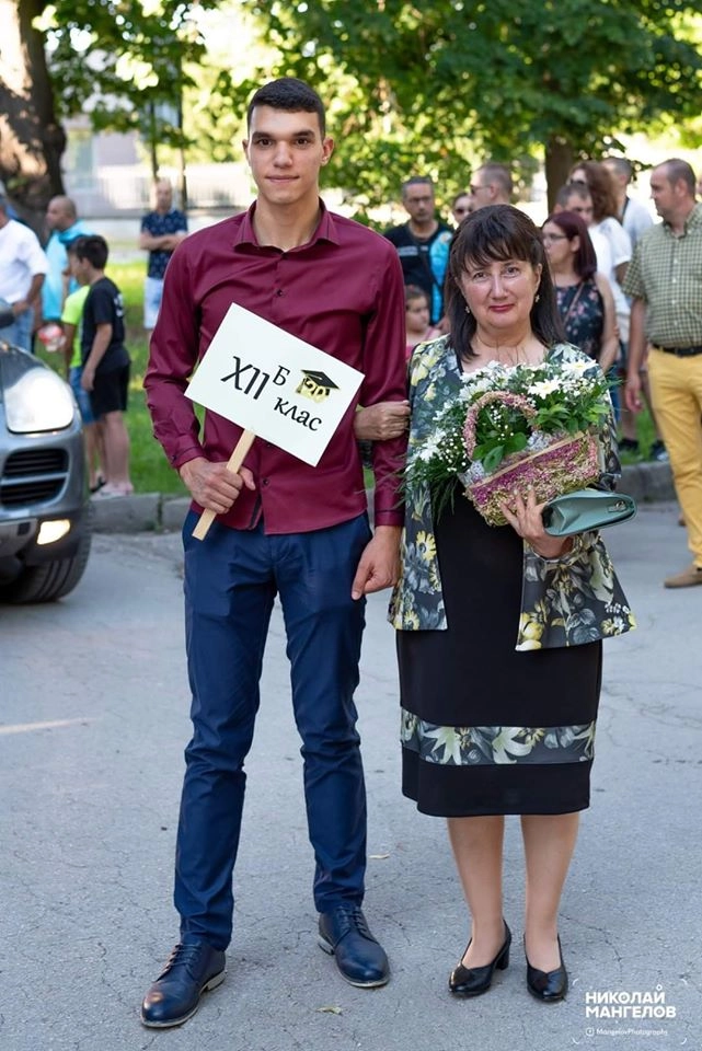 Драгомир Денчев с класния си ръководител Красимира Томева, снимката е предоставена от ПГМЕТ "Ген. Иван Бъчваров"