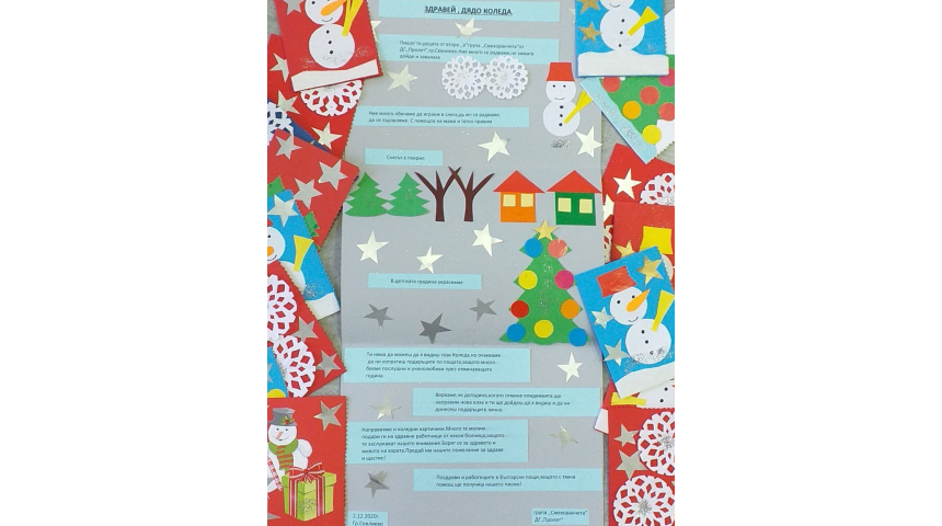 Картичките са изработени от децата от група „Смехоранчо“ в детска градина „Пролет“ в Севлиево. След като ги направили, децата изпратили писмо до Дядо Коледа, с което молят добрият старец да занесе изработените от тях картички на здравните работници в местната болница. От „Български пощи“ откликнали с готовност и се заели молбата на децата да стигне до Дядо Коледа, а след това, отново с тяхна помощ, картичките да бъдат предадени на лекари, сестри и санитари в МБАЛ "Д-р Стойчо Христов".