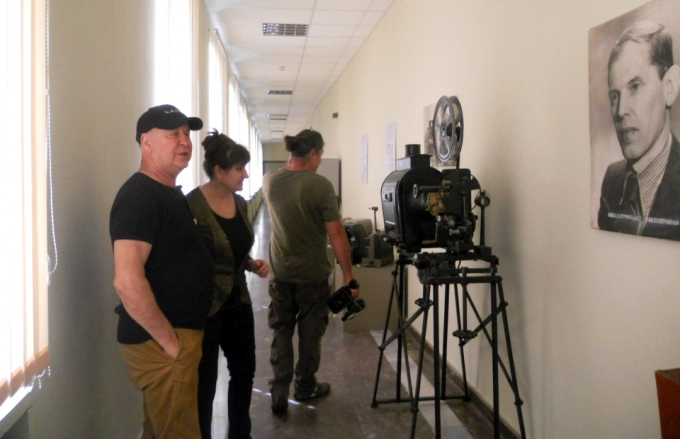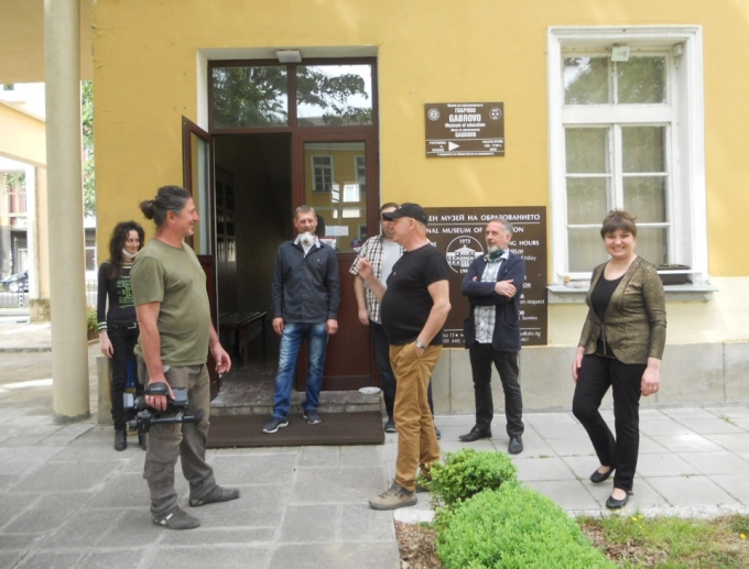 Валди Тотев със снимачния екип, снимка: Национален музей на образованието Габрово