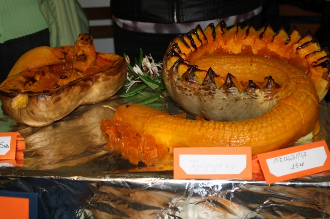 В категория "Печена тиква" на първо място бе класирана тиквата, приготвена от Цветелина Рускова, на второ - културен клуб на пенсионера "Васил Левски" в Севлиево и на трето - Детска градина "Слънце". Тук ще направим уточнението, че импровизираният щанд на детска градина "Слънце" можеше да съперничи на щандовете на професионалните кулинари. Готвачките на градината се бяха справили изключително, не без помощта и на госпожите, научихме по-късно от директорката.