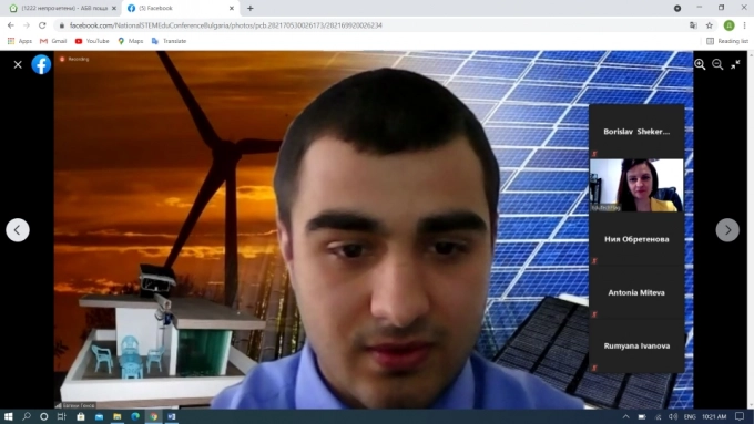 Евгени Генов работи с научен ръководител инж.Дияна Николова. Двамата в екип участваха в конференцията в направление „STEM ученически проекти и иновации“.