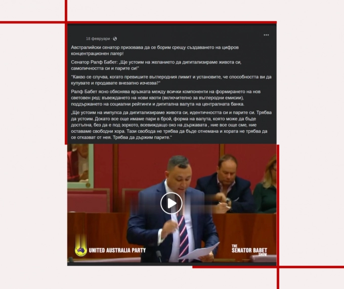 Друг „вносен” говорител по темата е австралийски политик. Ралф Бабет е единственият сенатор от консервативната популистка и националистическа партия „Обединена Австралия”. У нас се разпространява видео на Бабет с руски субтитри.