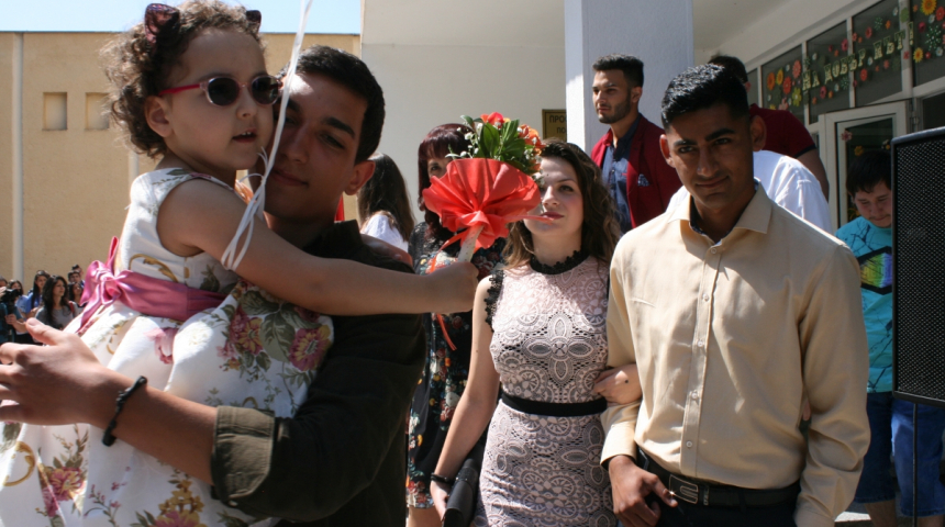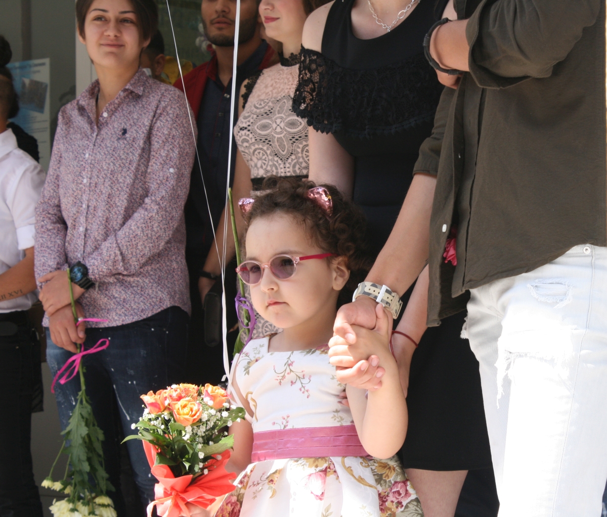 Каузата "да помогнем на Габи да ходи" е станала кауза и на дванайсетокласниците от 12 в клас на ПГМЕТ "Ген. Иван Бъчваров". Затова днес Габи дойде при тях, облечена като малка абитуриентка, стискайки букетче рози. Подкрепяха я майка й Христина и класната ръководителка на 12 в инж. Станислава Маринова. Но само докато един от абитуриентите не вдигна на ръце момиченцето.