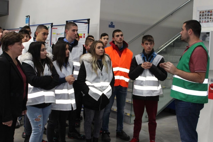 Учениците имаха възможността за кратко да усетят атмосферата на голяма производствена фирма. След като им беше проведен инструктаж по безопасносст, за тях бе организирана среща с двама работници - Васил Сомлев и Венета Василева, родители на ученици от класа.