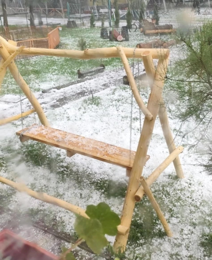Дванайсет минути е продължила градушката в село Горна Росица, откъдето потребители на социалната мрежа алармират за сериозни щети по дворовете и посевите им.