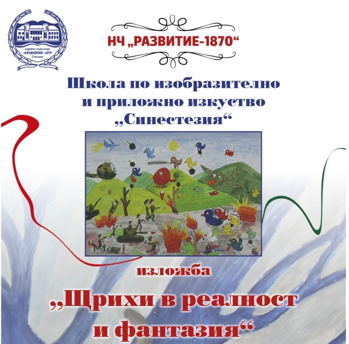 „Щрихи в реалност и фантазия” представят малките художници от Школата по изобразително и приложно изкуство при НЧ „Развитие-1870”. Откриването е на 10 април, от 17:30 ч., в Синята галерия на читалището.