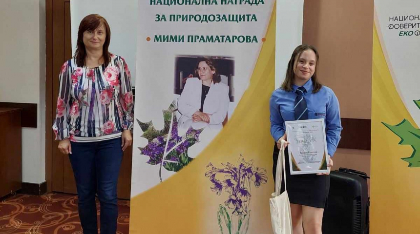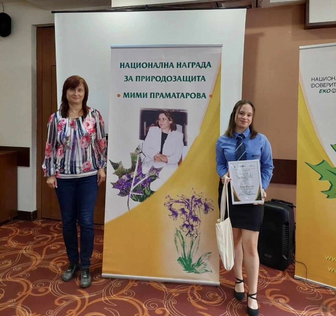 Грамота, плакет и предметна награда получи Хюлия Моллова, ученичка в 11 клас на Професионалната гимназия по механоелектротехника "Ген. Иван Бъчваров" в Севлиево, за участието си в националния литературен конкурс на тема „Мечтите на дивите цветя”.