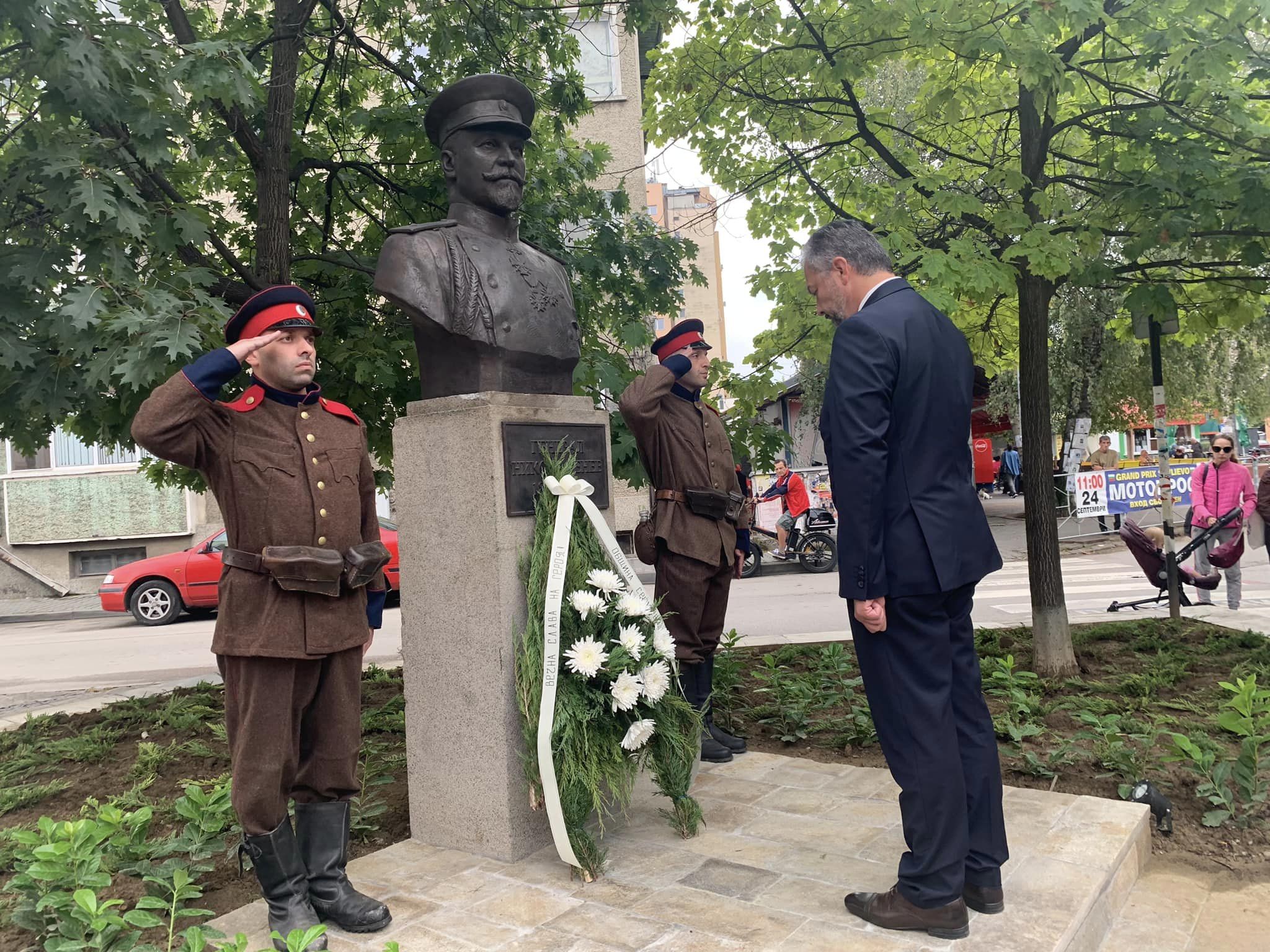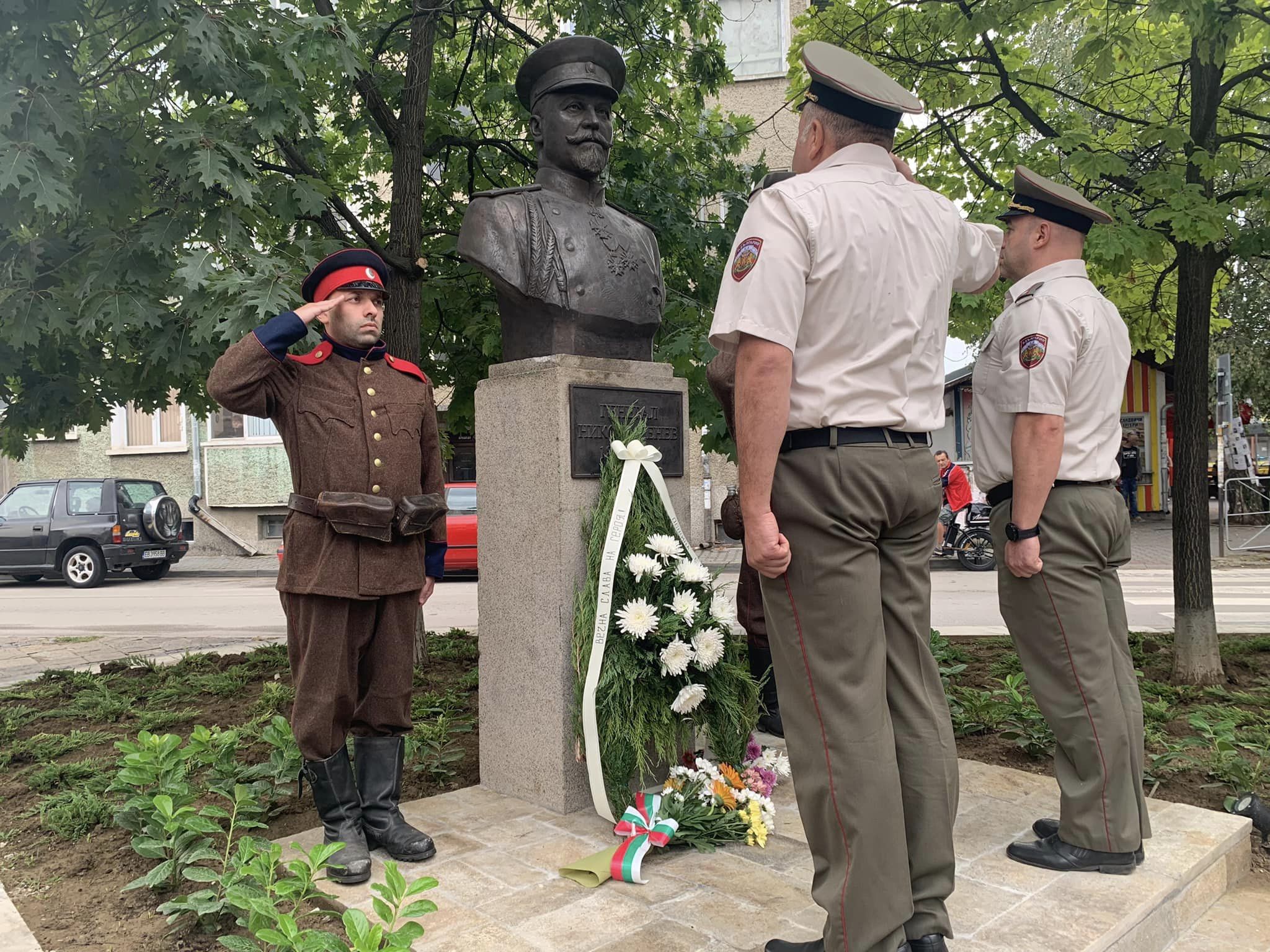 Граждани почетоха паметта на ген. Никола Генев и оставиха цветя пред новооткрития паметник в Севлиево, снимка: Община Севлиево