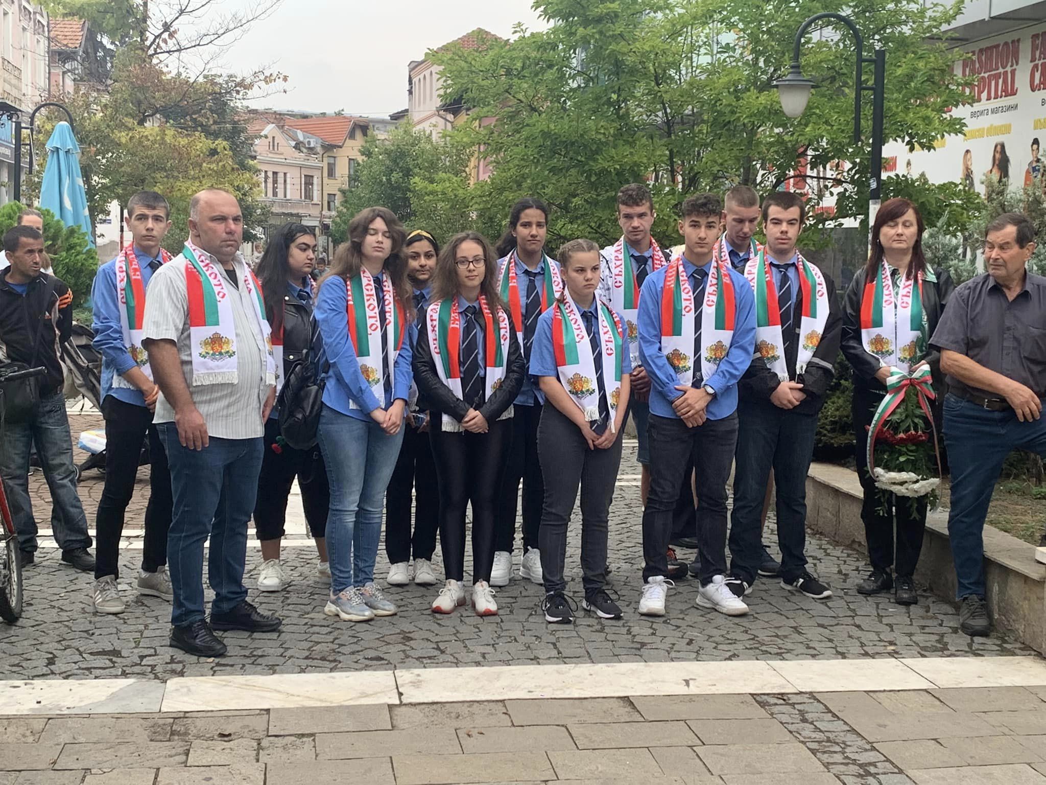 Ученици от клуб "Съхрани българското" в ПГМЕТ "Ген. Иван Бъчваров" дойдоха за откриването на паметника, снимка: Община Севлиево
