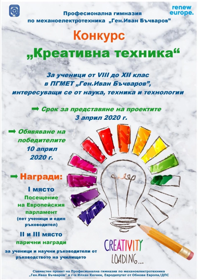 На 24 януари т.г. евродепутатът Илхан Кючюк даде старт на конкурса „Креативна техника“ – съвместен проект на Професионална гимназия по механоелектротехника „Ген. Иван Бъчваров" в Севлиево и Илхан Кючюк.