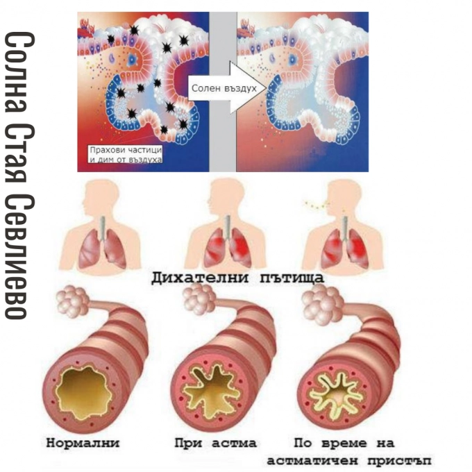 Само след няколко сесии дишането става много по-леко. С течение на терапията затрудненото дишане, кихане, кашляне и конгестия (лигавицата е кръвонапълнена и отточна) постепенно се облекчават. Аерозолните частици на солта, които имат антибактериално, антисептично и противовъзпалително действие достигнат чак до най-тесните алвеоли на дробовете и „изчистват“ лигавицата от слуз и патогени. Дихателните пътища се разширяват. Дишането се подобрява. Често, след проведена солна терапия, използването на инхалатори и стероидни медикаменти значително намалява.
