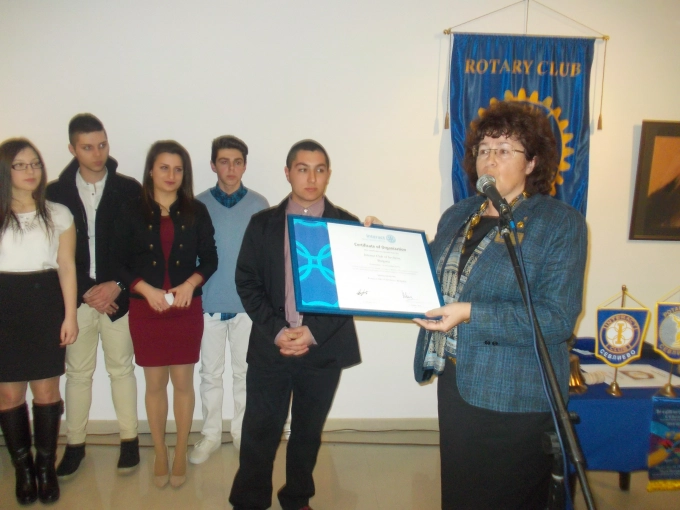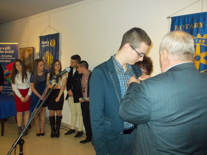 Максимилиян Пенков е първият президент на Интеракт Севлиево. Днес той сложи на гърдите си огърлицата на Ротари. А всичките 26 членове на младежката Ротари организация, наричана Интеракт, получиха от ротарианци своите значки, знак за членството им, както и членски карти.