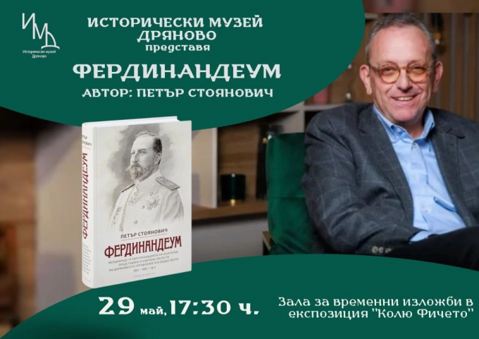 На 29 май, четвъртък, от 17:30 ч. в залата за временни изложби към експозиция „Колю Фичето“ в Историческия музей в Дряново, ще бъде представена книгата на проф. Петър Стоянович „Фердинандеум“.