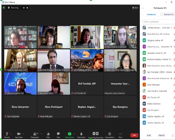 Конференцията беше открита от д-р Гергана Жулева, изпълнителен директор на ПДИ, която подчерта, че „историята на ЗДОИ и неговото прилагане е свързана с историята на ПДИ". Тази година Програма Достъп до информация навърши 25 години от своето основаване. Законът за достъп до обществена информация бе приет през лятото на 2000 г. В хода на прилагането на закона излязоха някои проблеми, които трябваше да бъдат решени. Законът бе променян няколко пъти и все в позитивен план. Това, че днес има толкова хора на онлайн конференцията е показателно за интереса към темата, подчерта д-р Жулева
