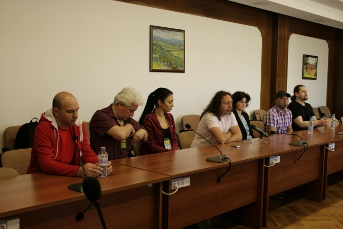 Всички музиканти от групата дойдоха за среща с журналистите. Редом до тях бе и Моника Костадинова - "Връзки с обществеността" в "Идеал Стандарт-Видима" - фирмата-спонсор на концерта тази вечер, която от името на компанията заяви, че застава зад инициативата да звучи повече български език в родните ни песни и се излъчват повече песни на български в родния ефир.