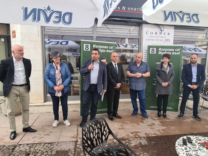 Водачът на листата на “Изправи се! Мутри вън!” наблегна и на един от най-важните проблеми пред региона, свързани с водоснабдяването в някои от общините както и на заниженото качество на здравната система. Георги Табаков подчерта и необходимостта от високоскоростна връзка на региона с АМ “Хемус”.