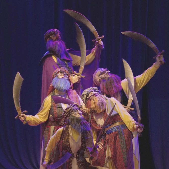Преподавателят от Националната художествена академия по „Дизайн на детска среда“ художникът–сценограф Елена Цанкова, вече част от постоянния екип на театъра, проектира сценографията, костюмите и куклите, вдъхновена от красотата на епохата, в която се развива действието. Изработени в художественото ателие на театъра с ръководител художникът Драгомир Цанев, те допълват актьорската игра, предавайки спецификата на ориенталската архитектура и изкуство.