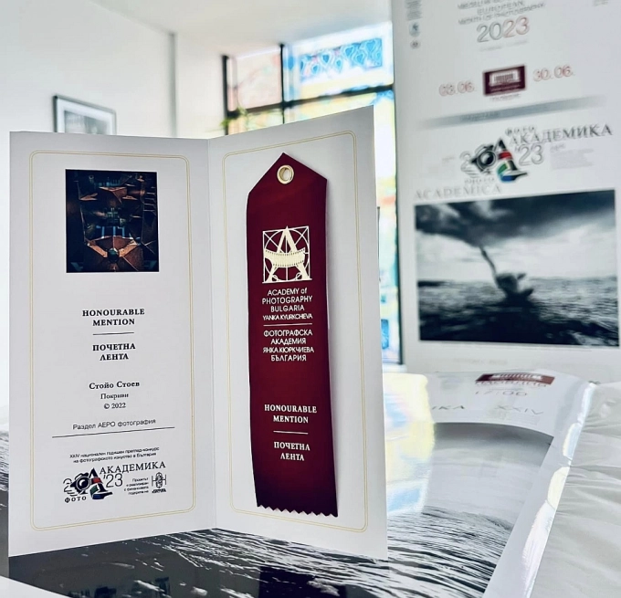 Почетната лента на Стойо Цонев е за фотографията му "Покриви" в категория “аерофотография”.