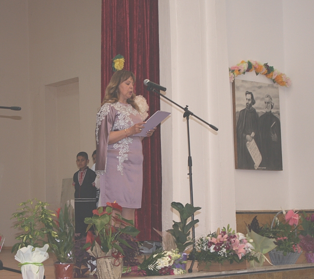 Учениците не успяваха да скрият вълнението си, както всъщност и директорката Маргарита Тинкова по време на празничното й приветствие. Може би заради препълнения салон, защото празника уважиха директори на детски градини и училища от цялата община, а поздравителните адреси валяха един след друг.