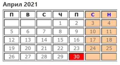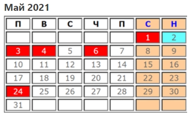 През месец май 2021 г. четири от работните дни няма да са работни.