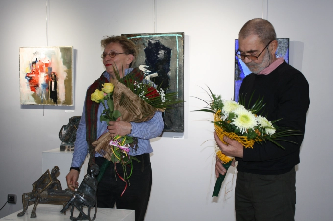 Същото е и с картините на Константин Симеонов. Те едновременно респектират, но и прегръщат. Много странно е усещането пред тях. Излъчват топлина, интелект, мъдрост, а някои извикват усмивка. Един уникален свят върху платно. Всъщност, една уникална изложба на Убавка Тончев и Константин Симеонов-Костика, която снощи бе открита в галерия "Видима".
