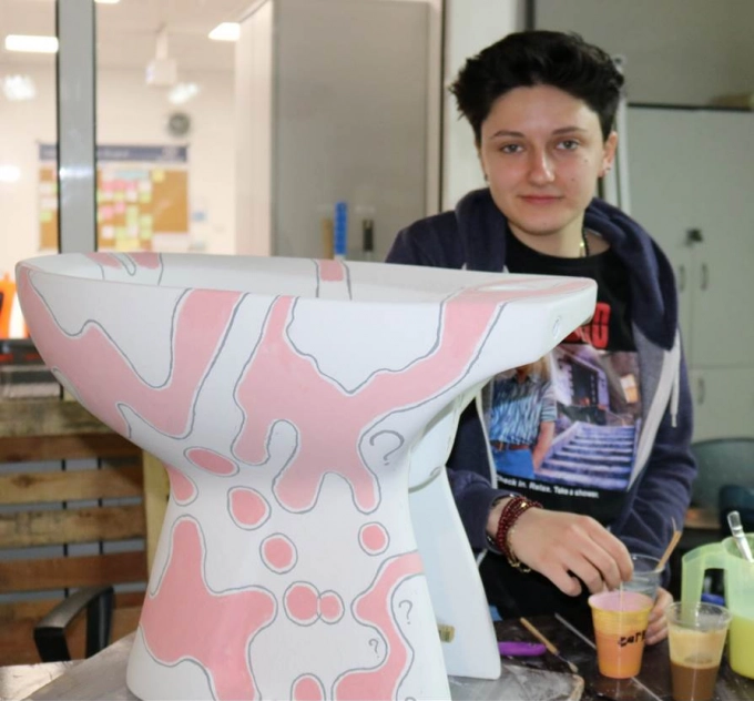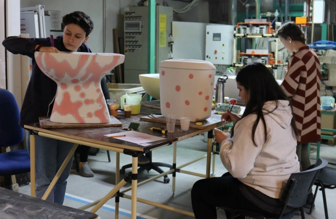За някои може да е странно, но всъщност правилната дума е "красиво". Точно нещо красиво се получава, когато студентите от Нов български университет рисуват върху керамичните изделия на Завода за санитарна керамика на "Идеал Стандарт-Видима”. И повярвайте, няма нищо странно в това тоалетната да бъде изрисувана.