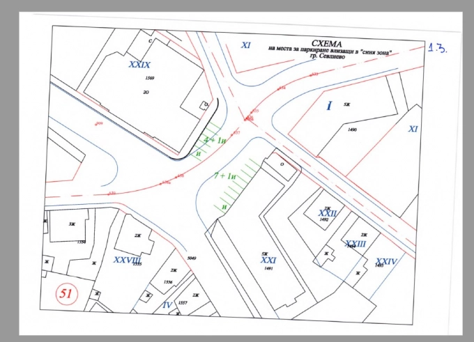 Кръстовището между улиците "Ген. Никола Генев" и "Опълченска" предвижда 19 платени паркоместа, плюс две за инвалиди