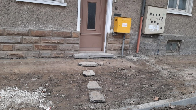 а автомобилите им са паркирани някъде в района. За да стигнат до входните врати на кооперациите, в които живеят, са наслагали парчета тротоарни плочи, другаде са насипали трошляк.