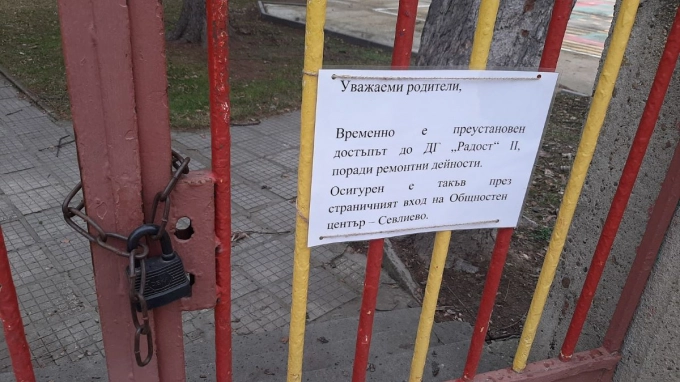 Входът за детска градина "Радост" е затворен от октомври м.г., снимка: "Севлиево онлайн"