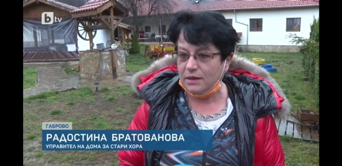 Жената, която виждате на снимката от репортаж на Би Ти Ви се казва Радостина Братованова. Тя влезе в новините защото е управител на дома за стари хора в с. Яворец край Габрово. Преди година, докато все още беше директор на Дирекция „Социално подпомагане“ в Габрово, Братованова заведе съдебен иск за клевета срещу „За истината“ и журналистката Емилия Димитрова защото отказваше да признае, че като държавен служител е насочвала хора точно към този дом. И дори го управлява „под прикритие“.