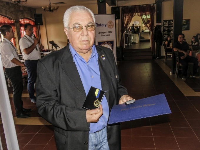 Нему се падна и честта да връчи наградите "Пол Харис Фелоу", лауреати на които стават личности, които отговарят на високите професионални и личностни стандарти, заложени от създателя на Ротари Пол Харис. Вчера с тях бяха удостоени Цоньо Събев - един от създателите на Ротари клуб Севлиево и Костадин Костадинов - два пъти президент на клуба и ревностен последовател на ротарианската идея.