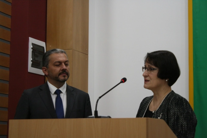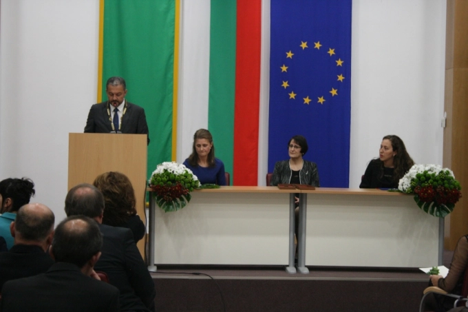 Иван Иванов (на трибуната), до него областният управител на Габрово Невена Петкова, Красимира Йорданова - изпълняващ длъжността кмет и председателят на ОИК Севлиево Снижина Дянкова