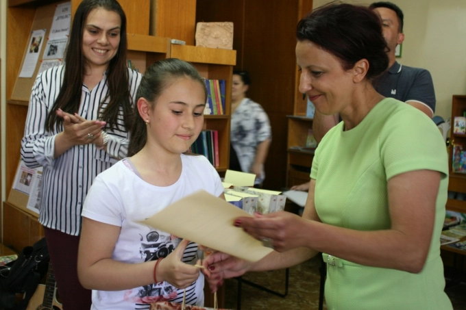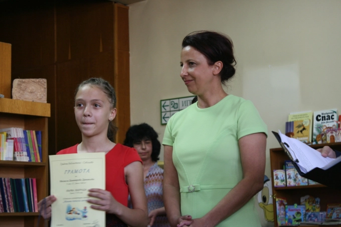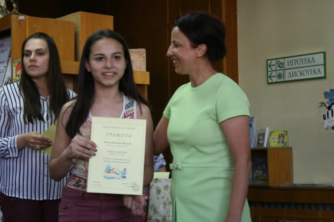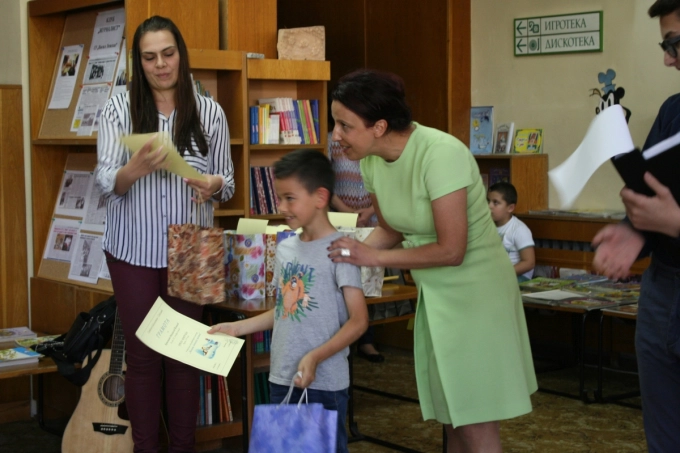 Отличените деца получиха награди, осигурени от Областен информационен център Габрово, чийто управител Маринела Събева лично приветства всяко от децата, наградени и участници в литературната надпревара. И обеща, че догодина, ако отново има такъв конкурс, Областния информационен център отново ще бъде партньор на Библиотеката.