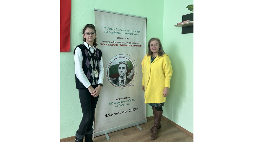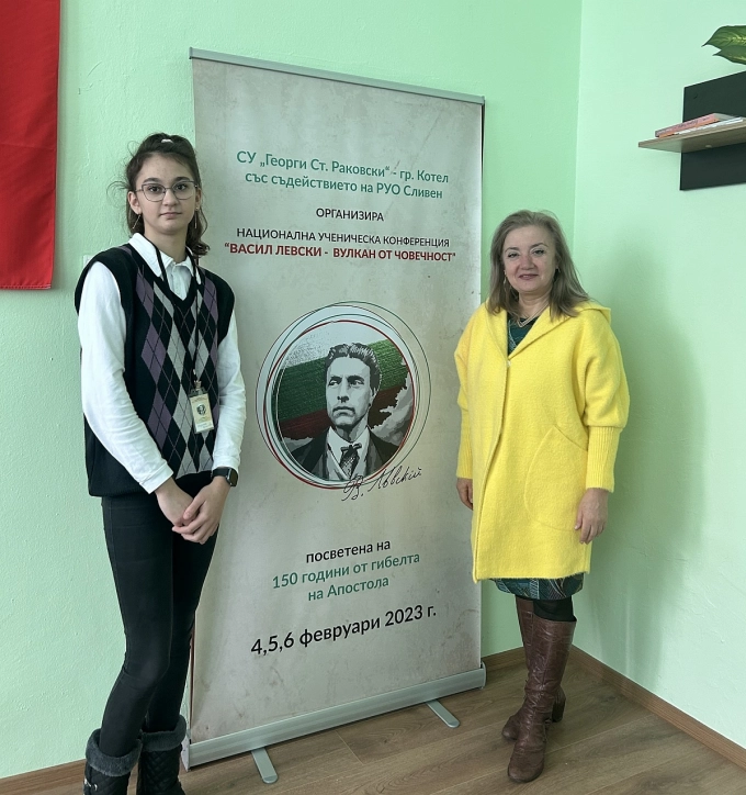 Марилена Христова, която за участието си в конференцията се подготвя под ръководството на своята преподавателка Капка Пандурска, представи авторското си есе „Васил Левски в Севлиевския край“. В него осмокласничката споделя размисли за революционната дейност на Дякона в нашия град, а за издирването на историческа информация изключително ценна е била помощта на Капка Пандурска.
