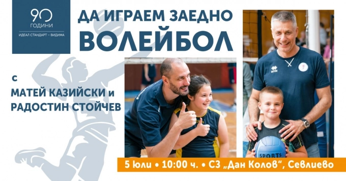 За четвърта поредна година по покана на „Идеал Стандарт – Видима“ в Севлиево ще дойдат отново волейболните легенди Матей Казийски и Радостин Стойчев.