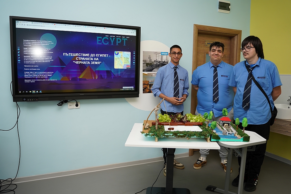 Чрез редактора Visual Studio Code Стефан Стефанов (10 клас) създаде страница на интердисциплинарния урок. Изкуствен интелект представи визитката на Египет. Използвайки платформите Google Earth и Premier pro Петър Димитров (10 клас) представи туристическия маршрут от София до Кайро.