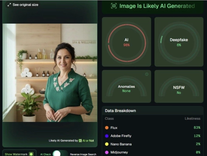 Профилните им снимки, както и другите снимки, които публикуват, са генерирани с изкуствен интелект. Това се потвърждава от проверка чрез инструмента AIorNOT.