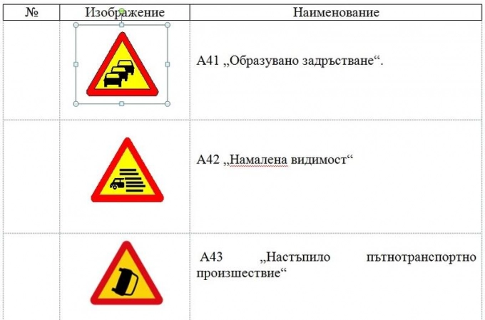 Предлага се въвеждането на три нови предупредителни знака за временна организация на движението. Те са от група "А" и ще сигнализират за опасност в жълт цвят. Знак А41 - „Образувано задръстване“, ще се използва за сигнализиране на пътни участъци, в които се е образувало задръстване, което водачите биха могли да не забележат своевременно. Знак А42 - „Намалена видимост“, ще се използва за сигнализиране на пътни участъци, в които видимостта е намалена поради мъгла, дъжд, снеговалеж, задимяване, запрашаване или други подобни условия. Знак А 43 - „Настъпило пътнотранспортно произшествие“, ще се използва за сигнализиране на настъпил инцидент, който създава опасност или затруднение за движението.